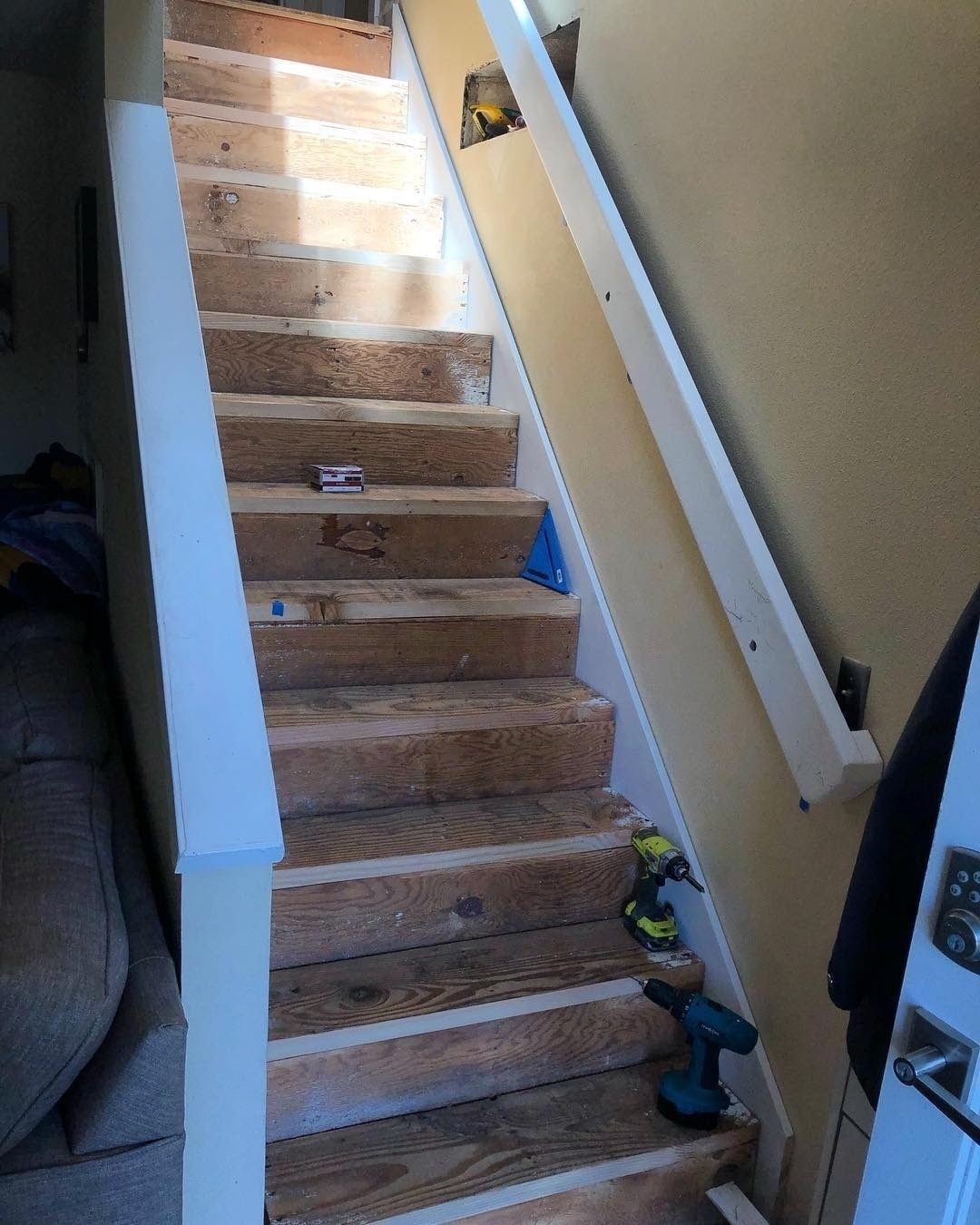Stair skirts cut and fitted, about ready to lay some flooring.