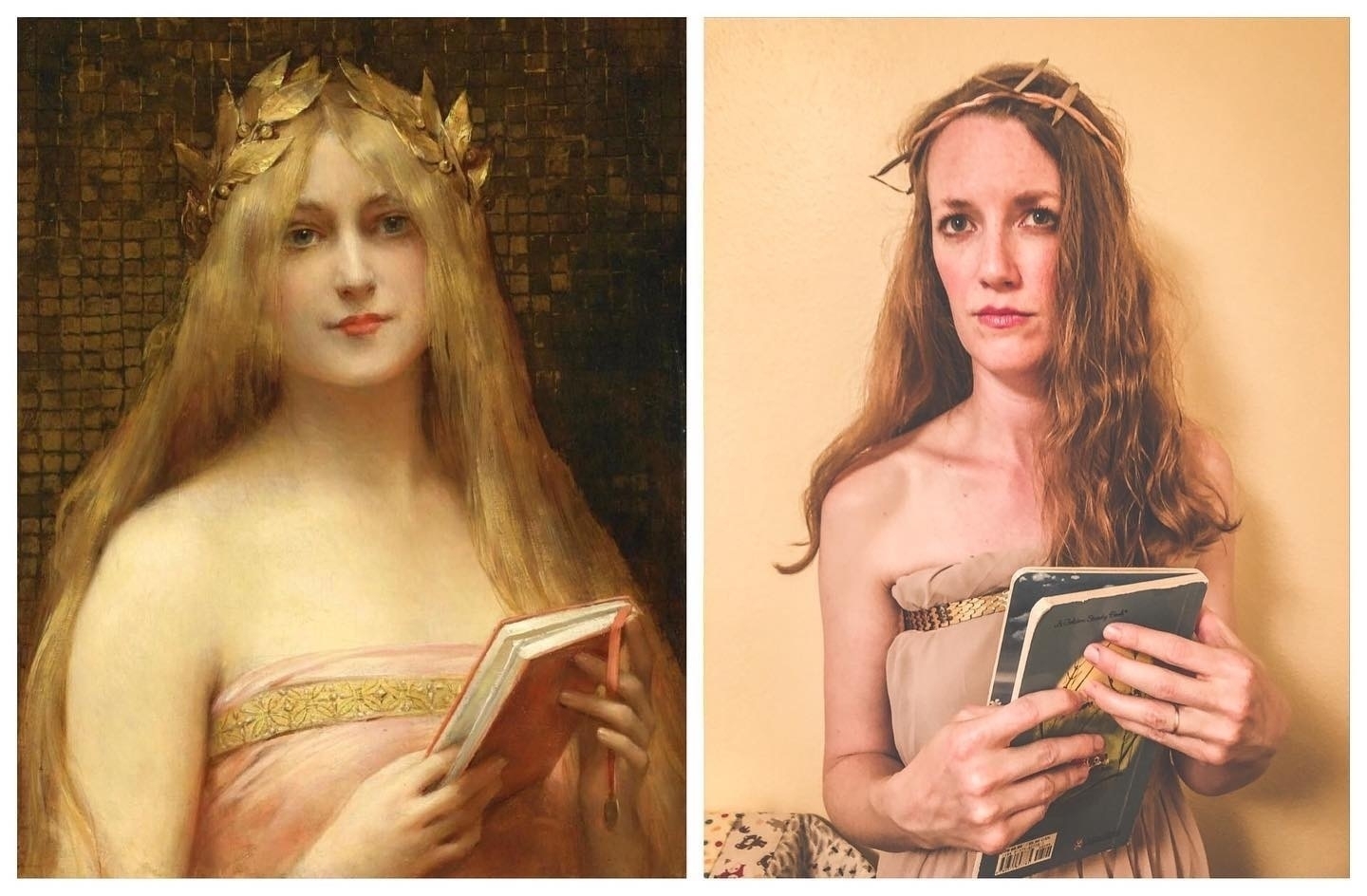 Back to 2020 April 21, 2020 at 3:58 AM When you’re bored and a friend suggests dressing up like characters from old paintings… @heatherlynn7c 😂