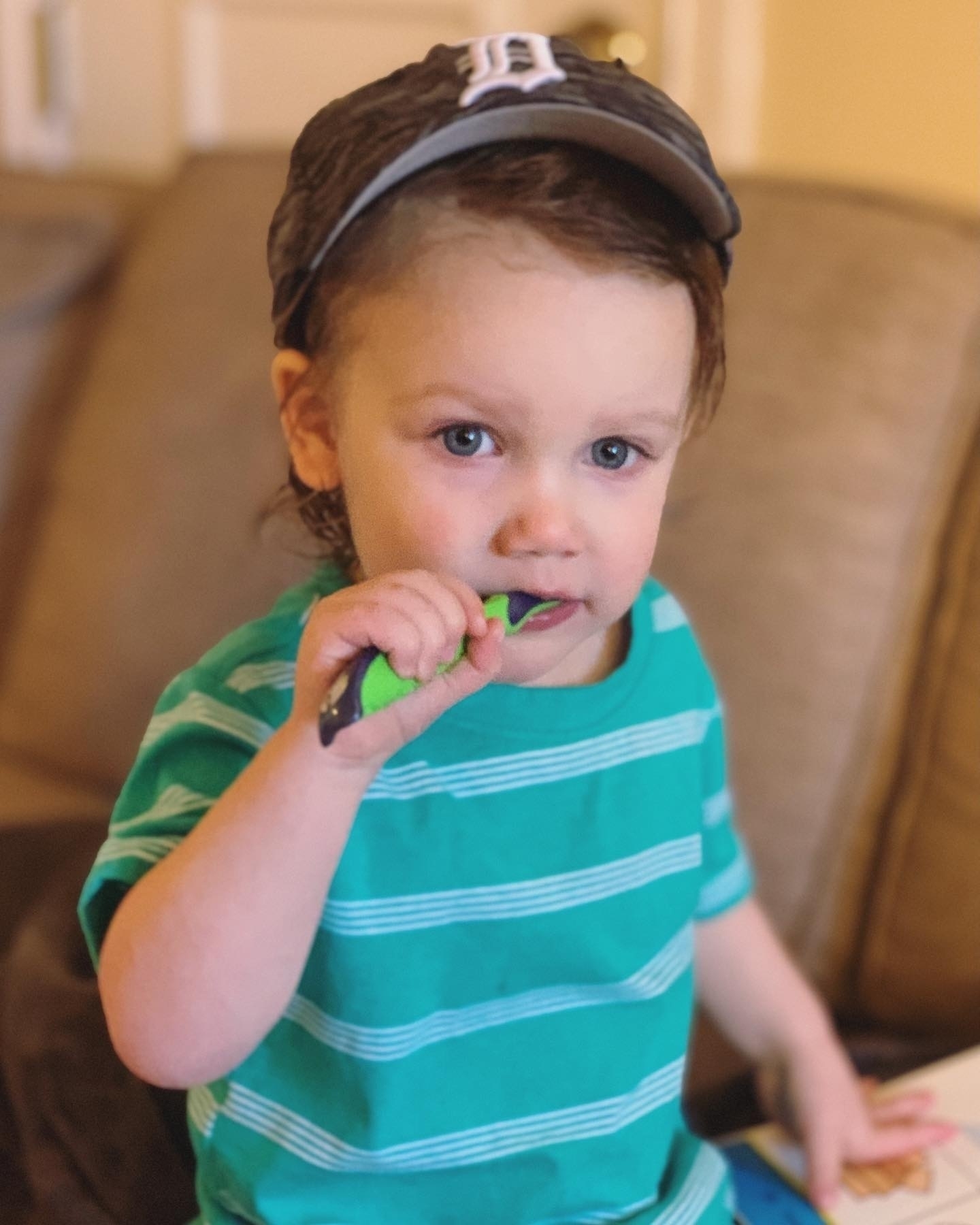 Getting pretty good at brushing his own teeth