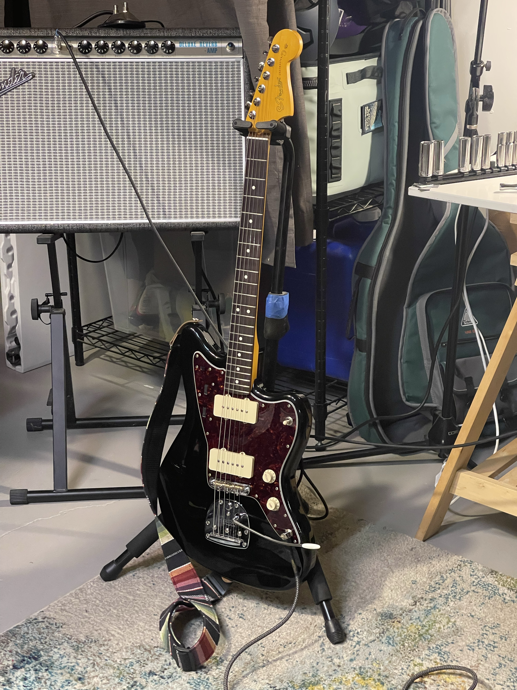 Updated the bridge and neck on my Custom Player Jazzmaster. Took the adjustomatic off in favor of a Halon, and replaced the MIM pau ferro neck with a American Professional II. Still needs a few tweaks, but so far so good. 🎸