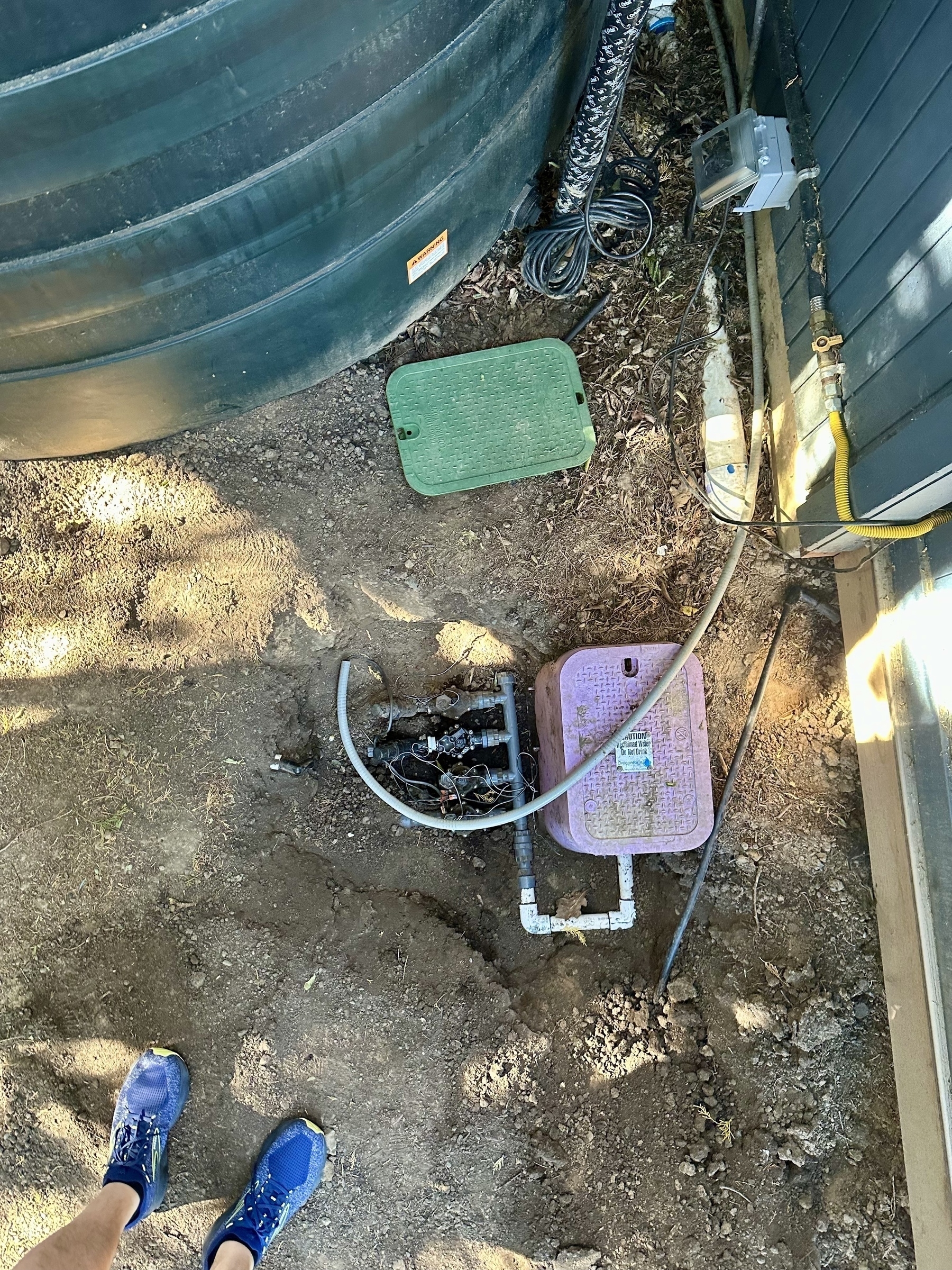 This past weekend’s project: the rainwater irrigation system. Despite a lot of work, I still haven’t solved the issue of the pump cycling. Suffice to say, I’ve put a lot more time into working on the automatic irrigation over the years than it would have taken to just water the vegetables by hand.